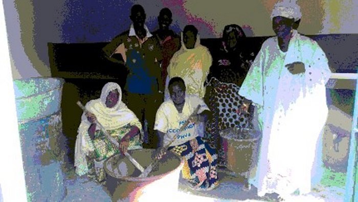 ⇒Taller de Saponificación para la Asociación de Mujeres para el Desarrollo ‘Djigui’, con financiación del Ayuntamiento de Calatayud (Zaragoza) (2012). Este ha sido uno de los proyectos más ambiciosos, que supuso la construcción (de obra nueva) de un Taller de Saponificación en beneficio de la Asociación de Mujeres para el Desarrollo ‘Djigui’ del Barrio de Hamdallaye, así como su dotación de material y utensilios (sosa caústica, aceite, guantes, tanque y mesa… etc.). El coste total ascendió a 15.659.000 gnf (1.739,88 €), de los cuales el Ayuntamiento de Calatayud se comprometió a pagar el 68% (1.183 €) en su convocatoria de Ayudas al Desarrollo de 2011. Este taller ha supuesto un gran impulso a esta asociación de mujeres, por cuanto les ha proporcionado un espacio y unos recursos que quedaban por completo fuera del alcance de sus medios. Como ya hemos señalado, el consumo de jabón artesanal en Guinea (como en buena parte de África) es muy elevado debido a su menor coste con respecto al industrial.